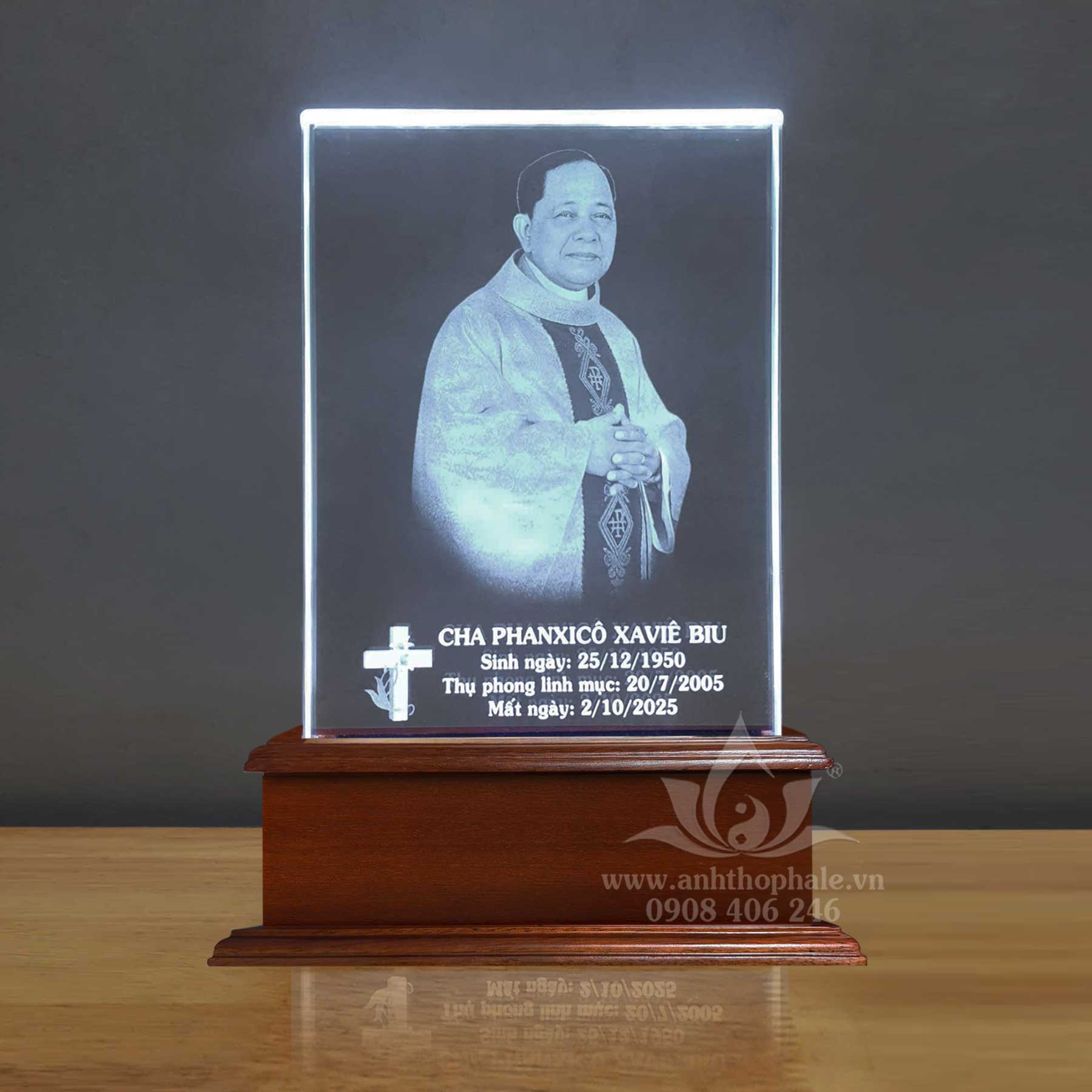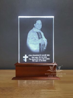 – Ảnh thờ pha lê công giáo khắc laser 15x21cm đế ngang