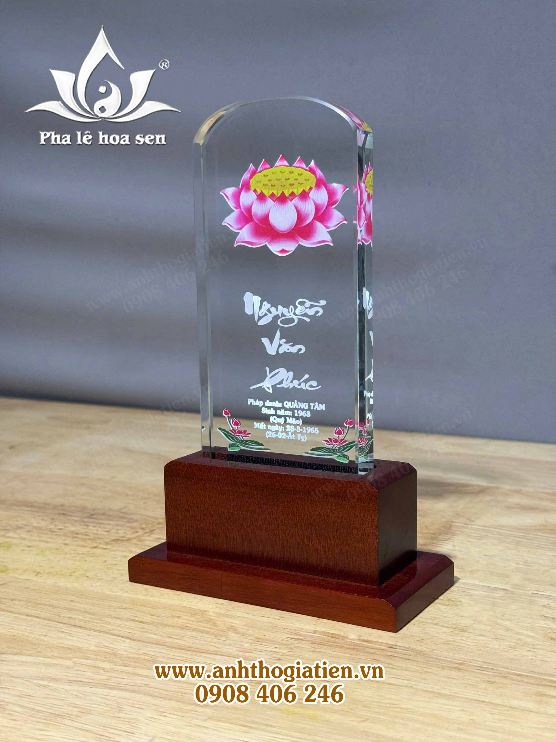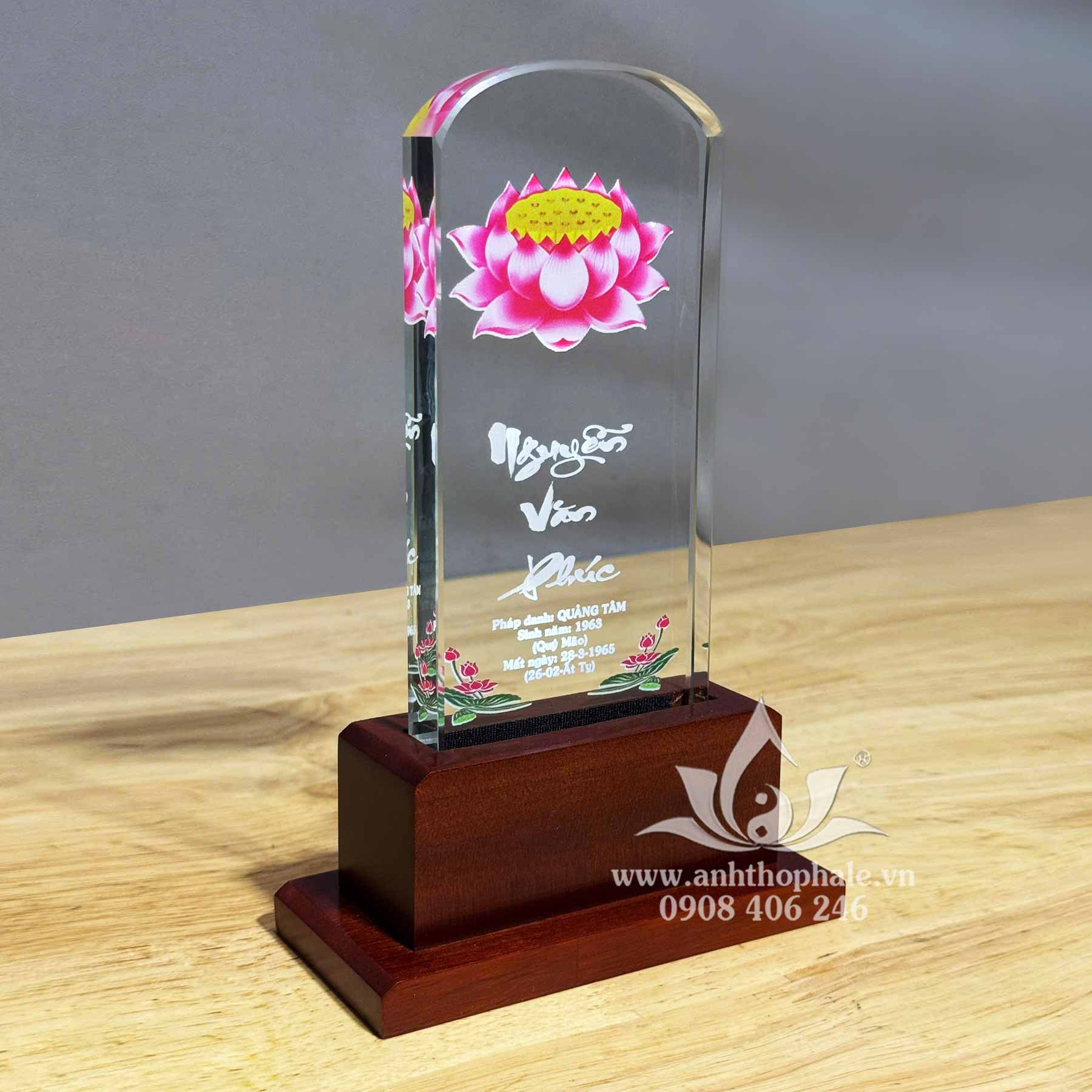Hãy là người đầu tiên nhận xét “Bài vị pha lê in hoa sen 7x15cm”