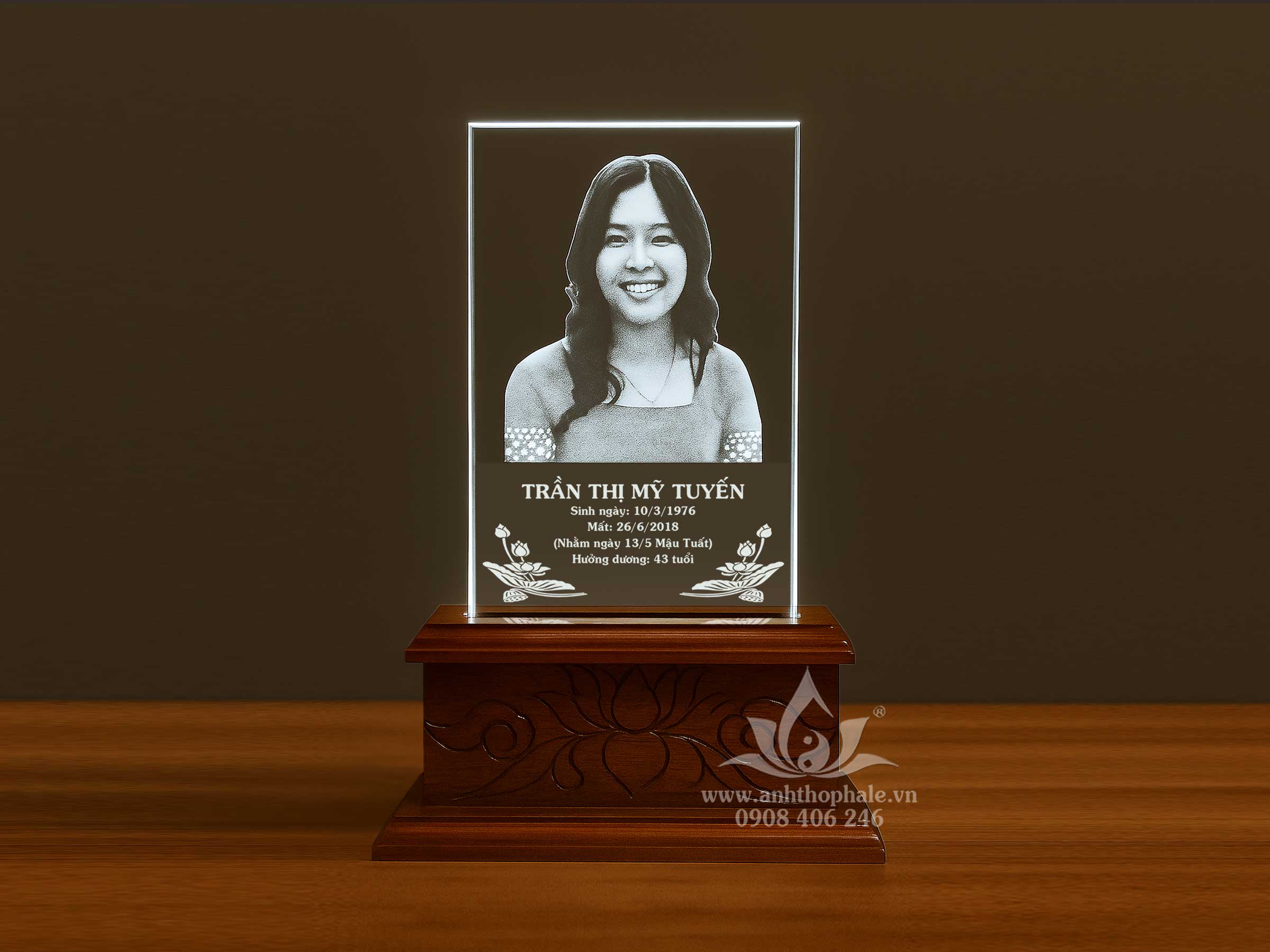 Dịch vụ chuyển đổi tro cốt sang dạng thạch táng – Làm ảnh thờ gia tiên bằng pha lê .