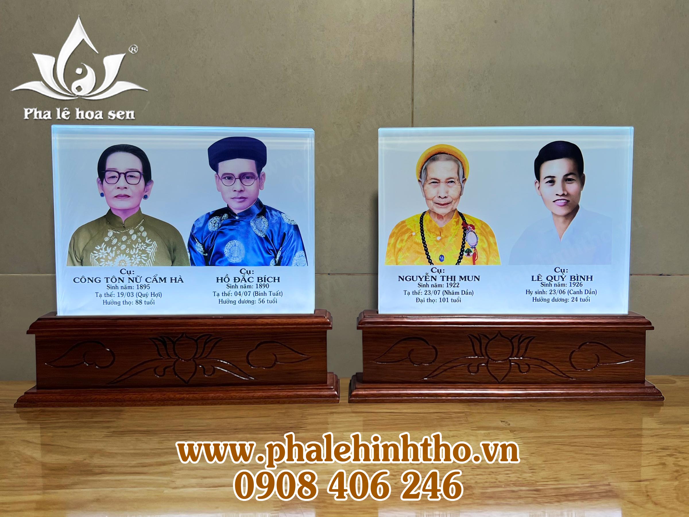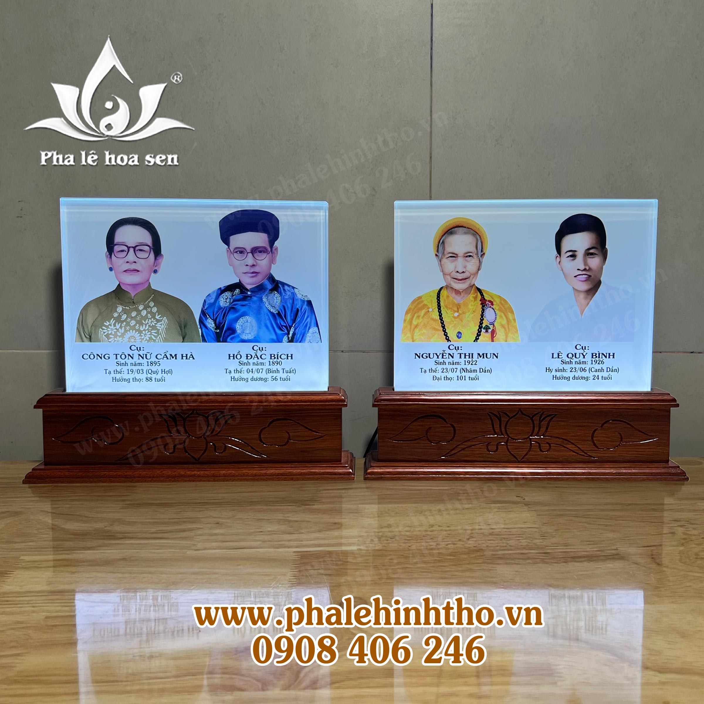 Ảnh thờ đôi pha lê in màu 25x20cm đế chạm sen