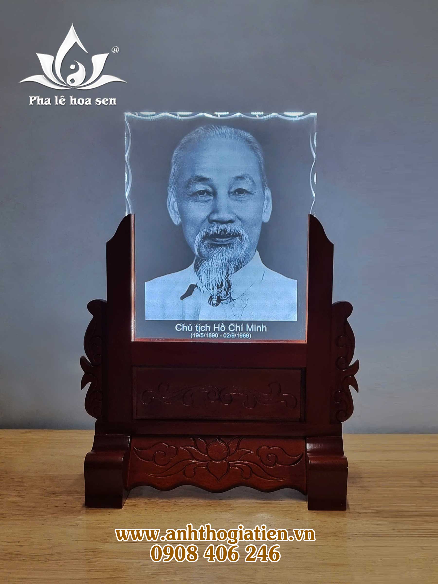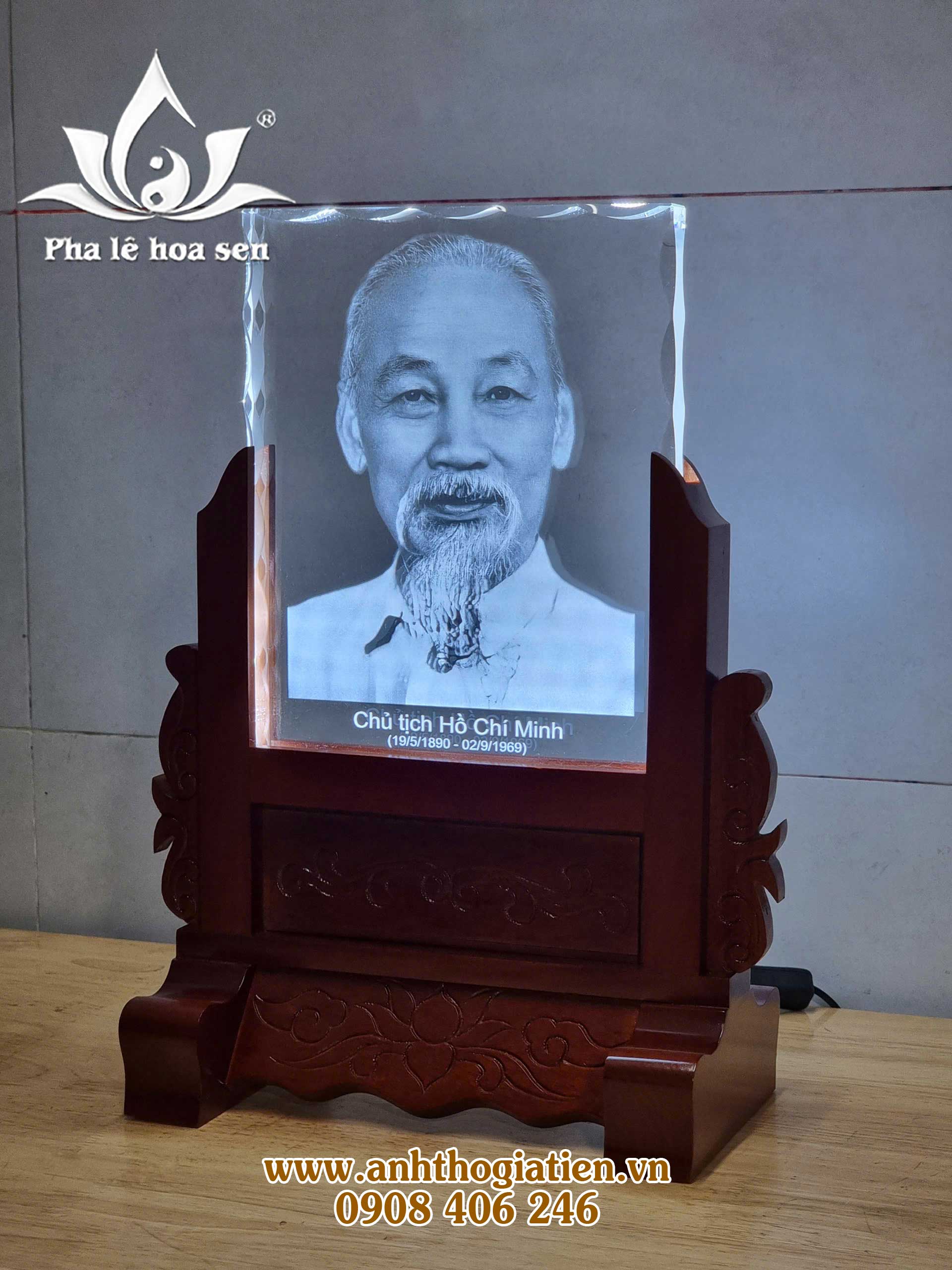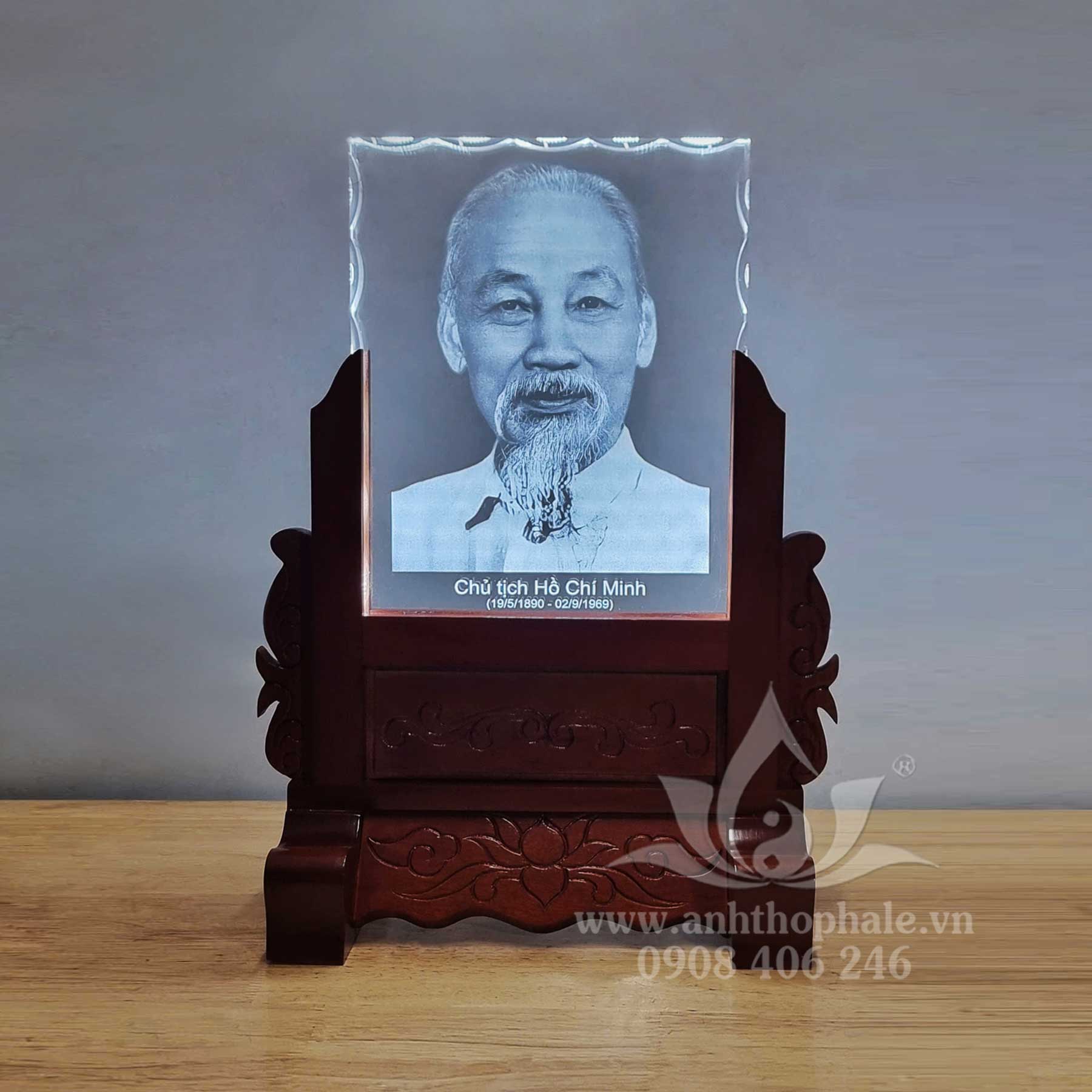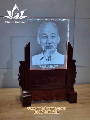 – Ảnh thờ pha lê Bác Hồ 20x25x2cm khắc laser mài sò