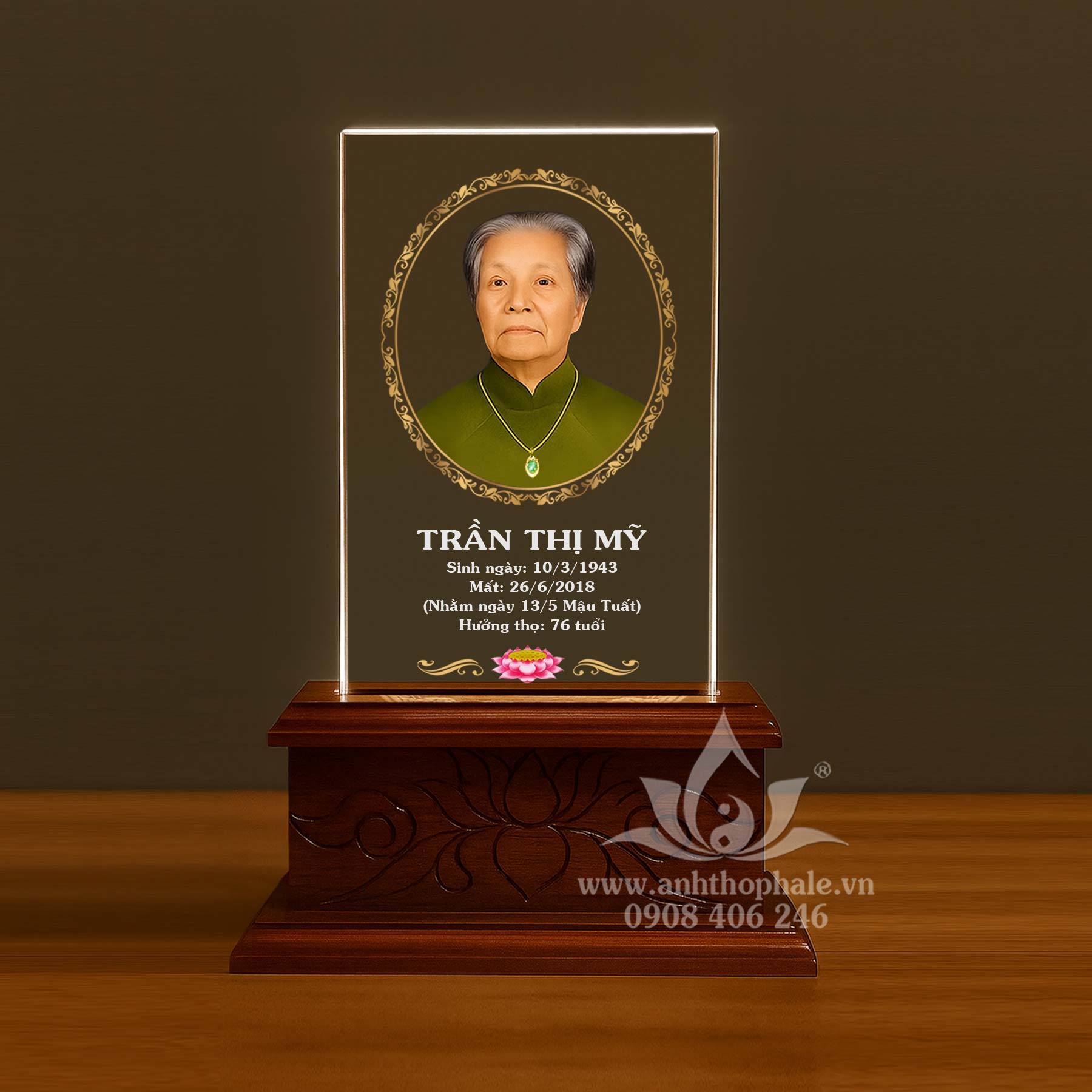 Ảnh thờ pha lê in màu k nền 12x20cm đế chạm sen