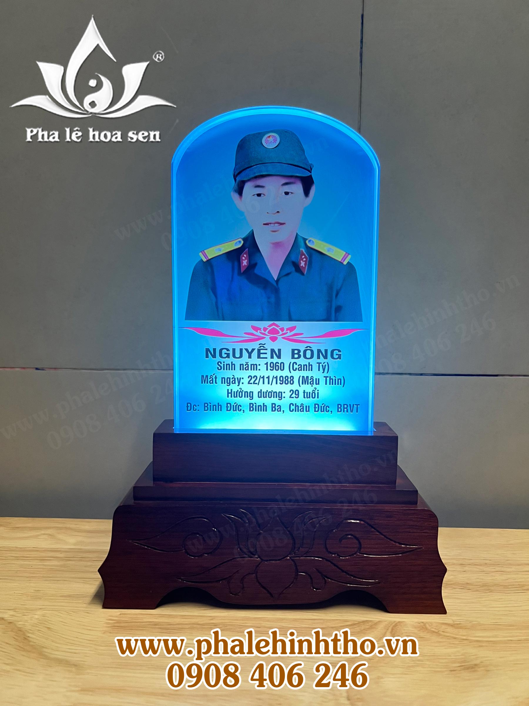 – Ảnh thờ pha lê in màu kích thước 12x20cm đế chạm sen