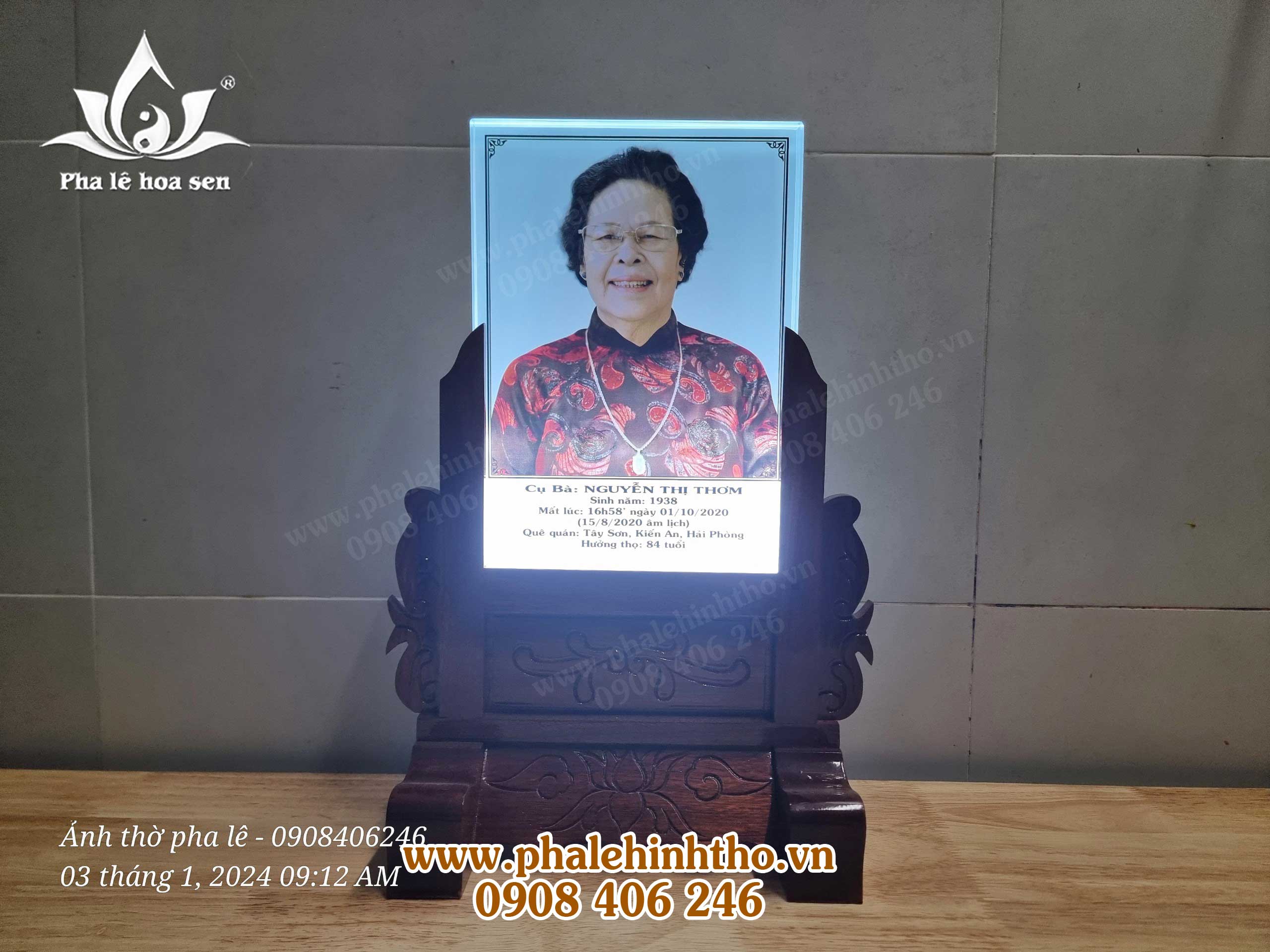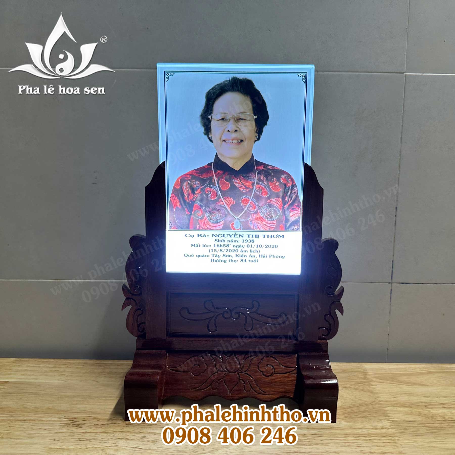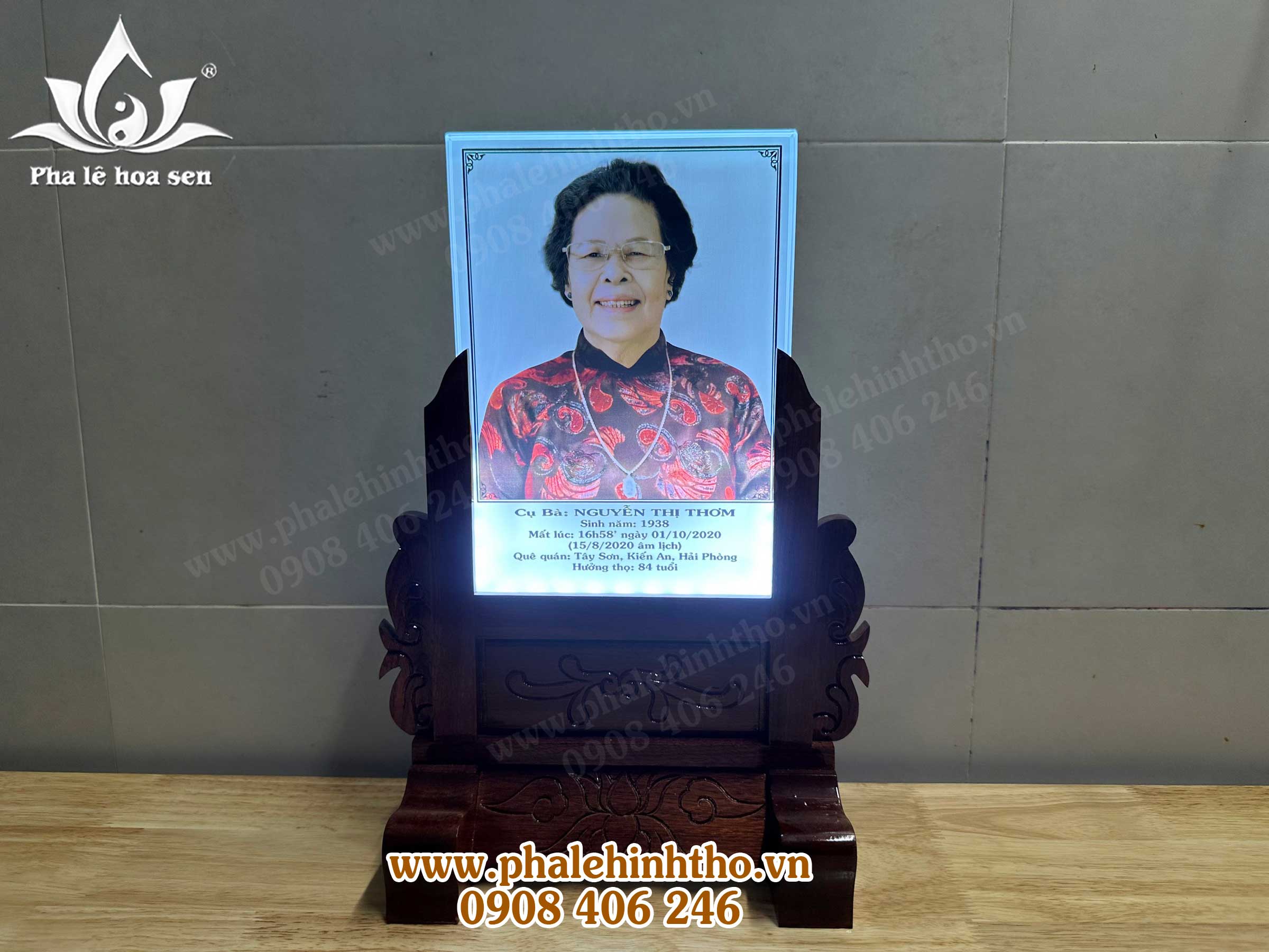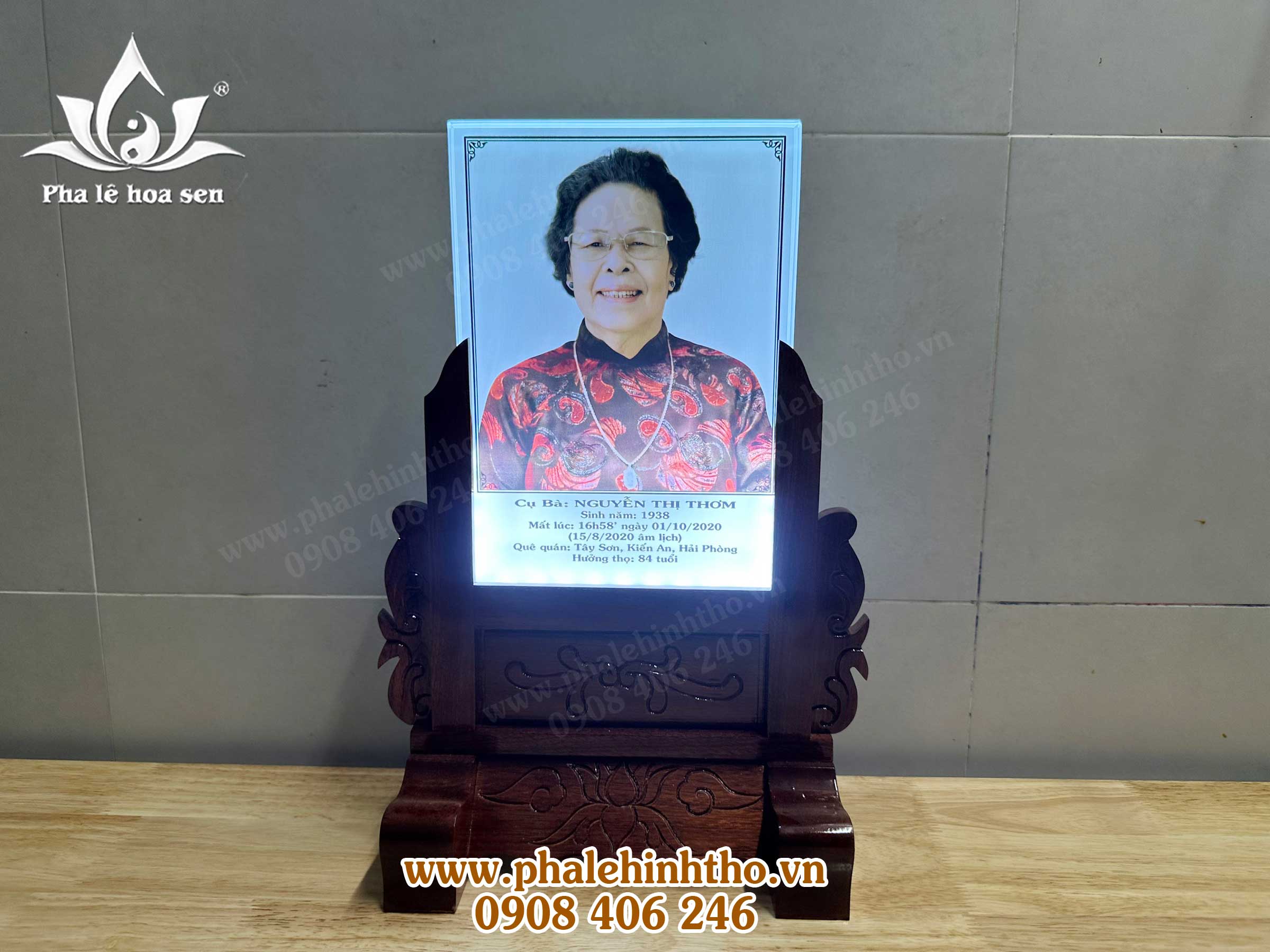 Ảnh thờ pha lê in màu kích thước 18x25cm đế chạm sen