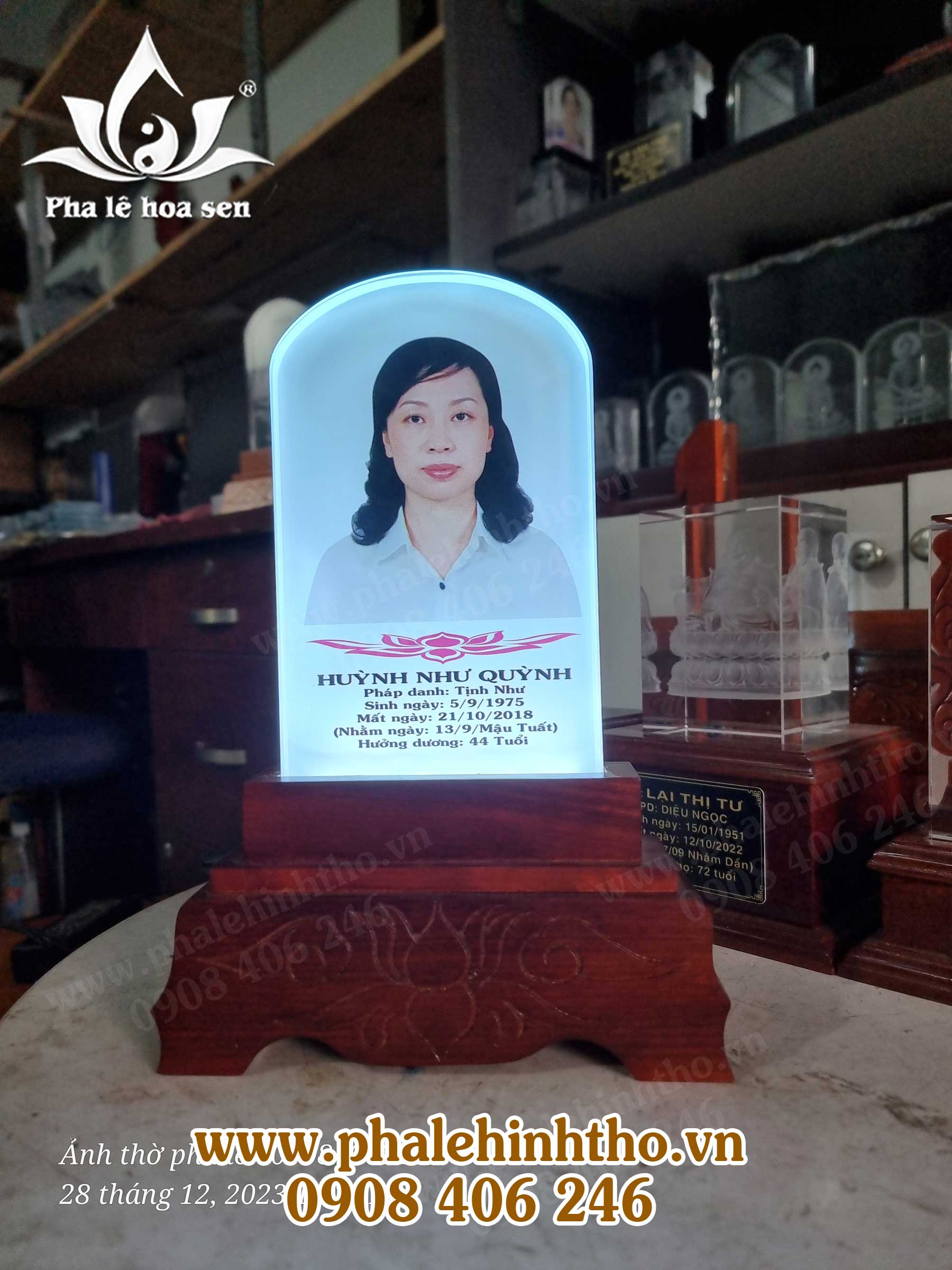 – Ảnh thờ pha lê in màu kích thước 12x20cm đế chạm sen