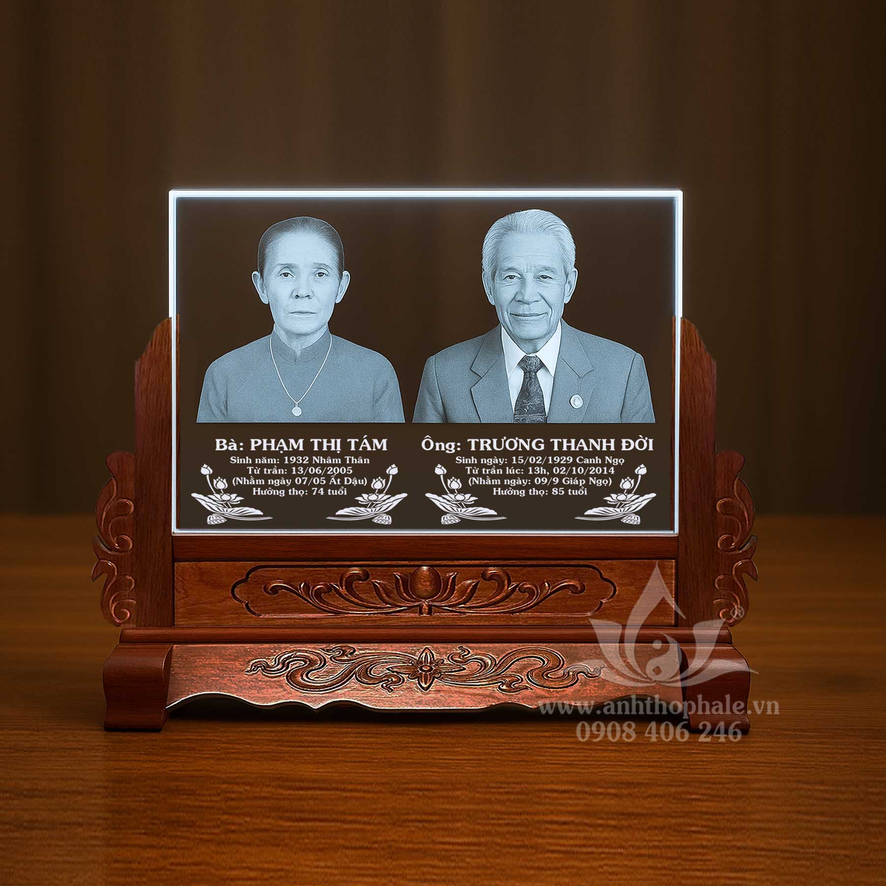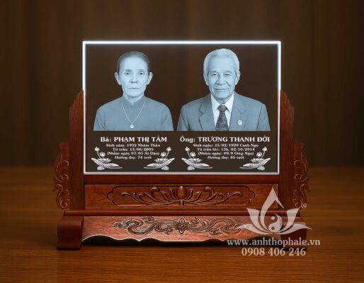 – Ảnh thờ pha lê hình đôi ông bà khắc laser kích thước: 30x22cm