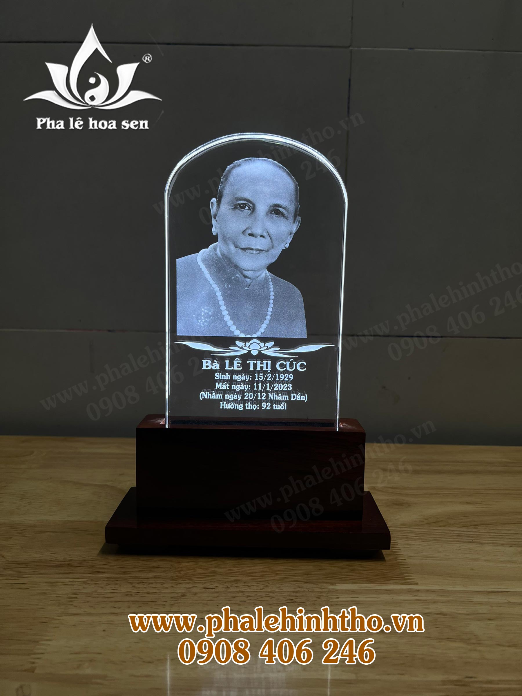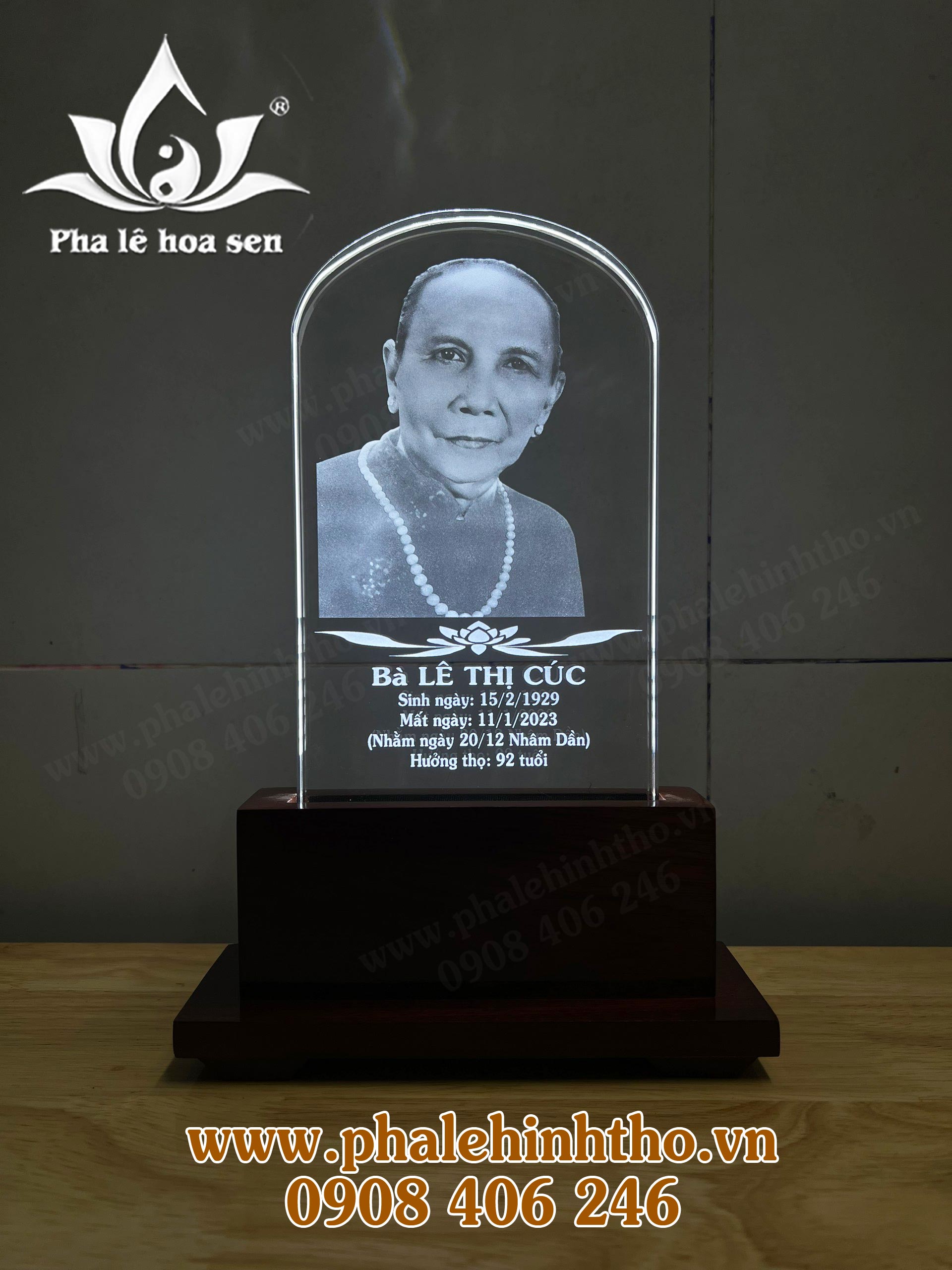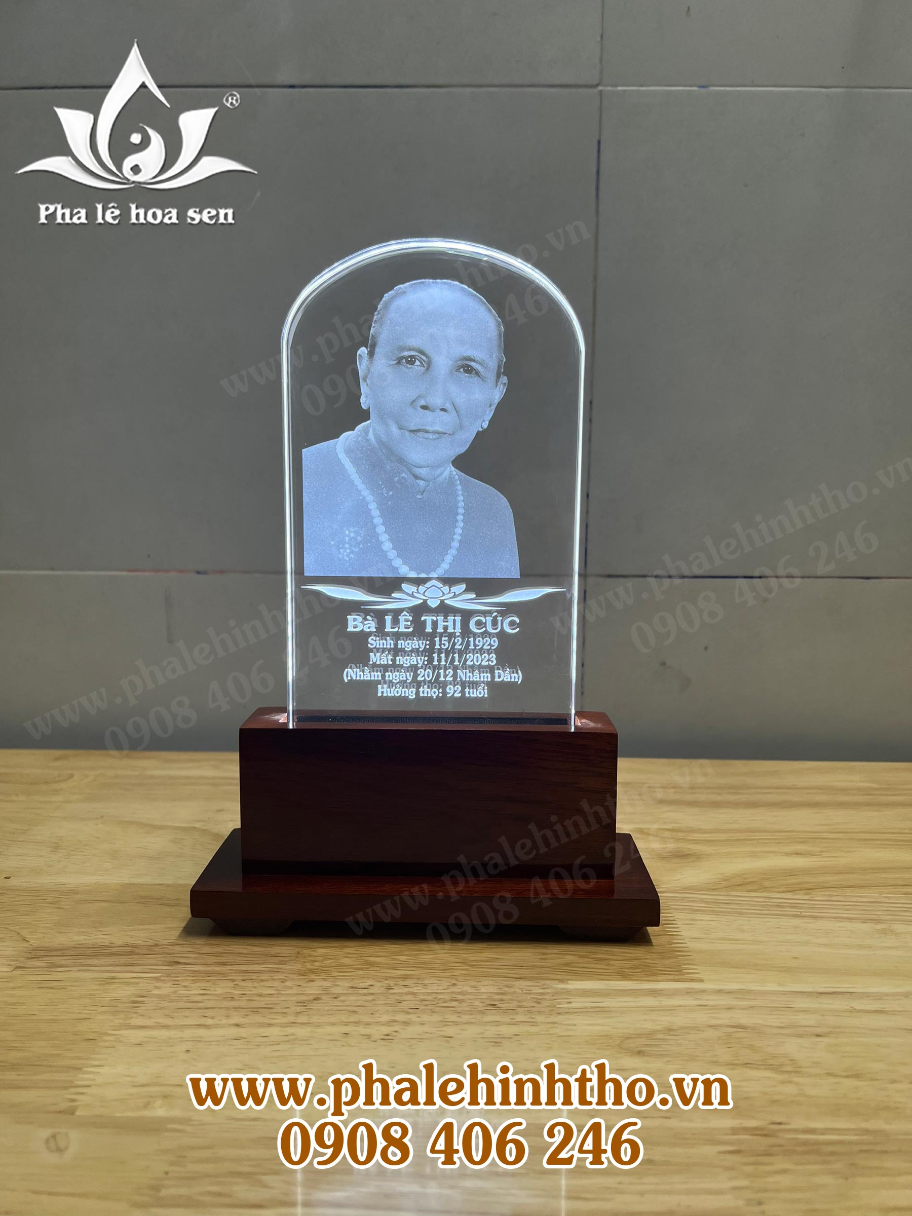 • Ảnh thờ pha lê khắc laser kích thước 12x20cm.