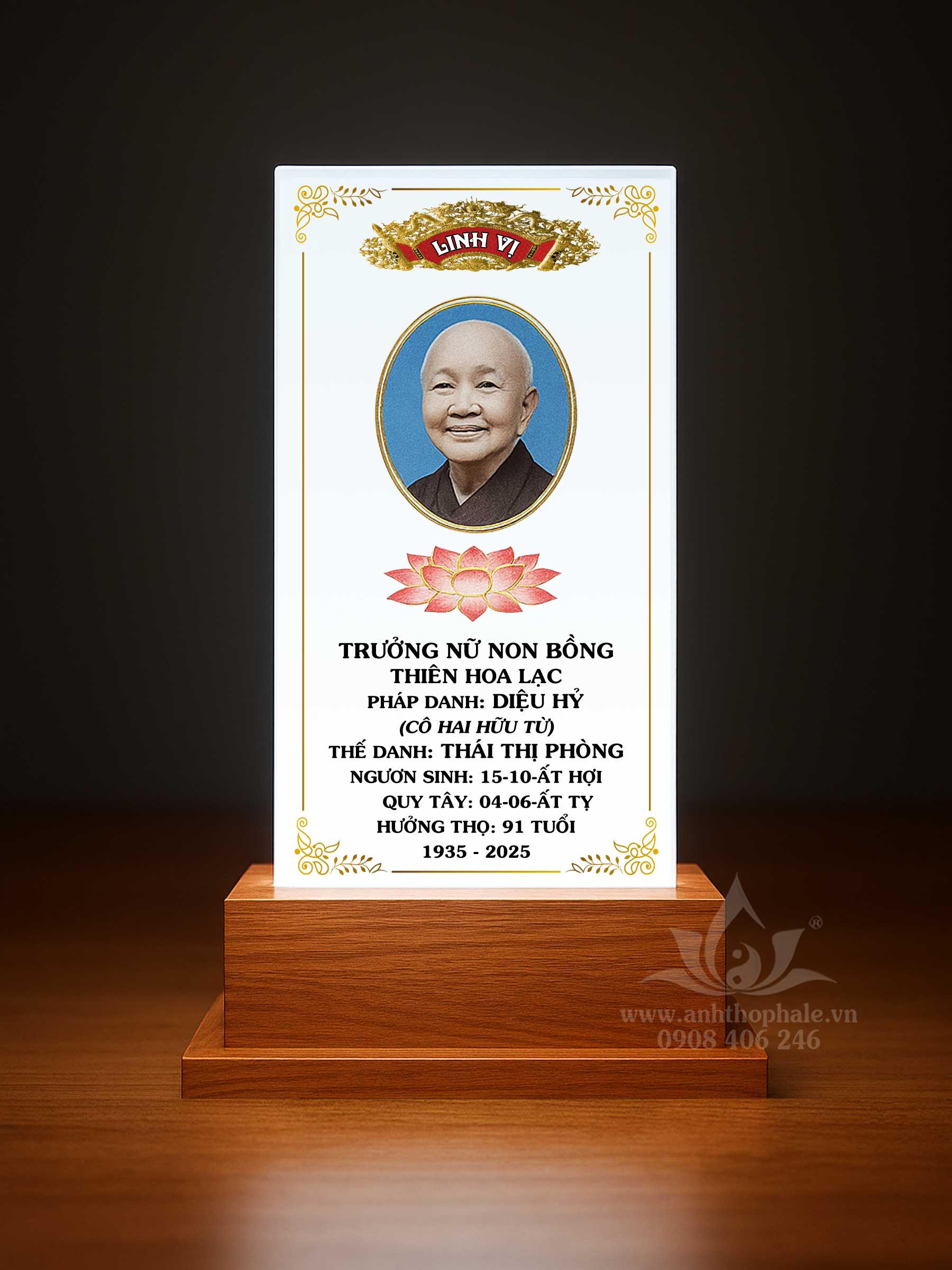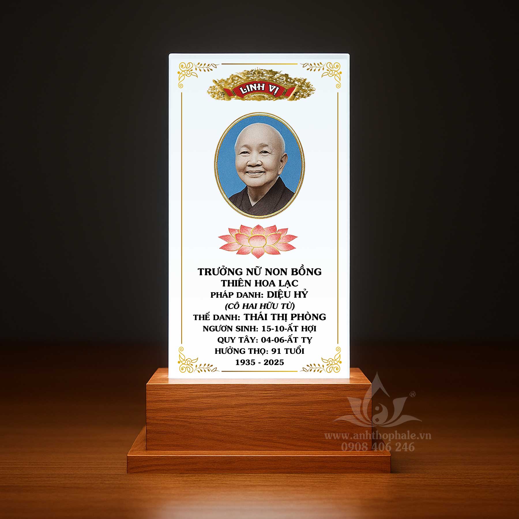 – Pha lê in bài vị 12x25cm
