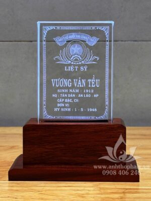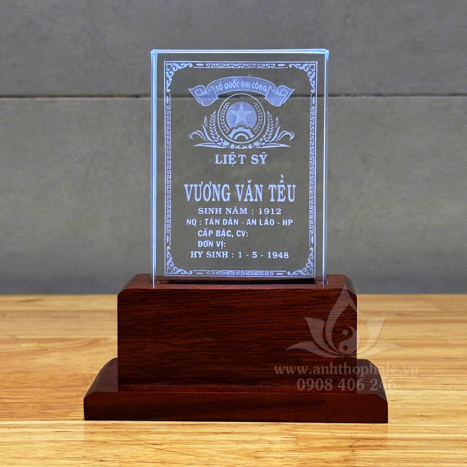 - Bài vị pha lê khắc laser 7×10 Tổ Quốc Ghi Công