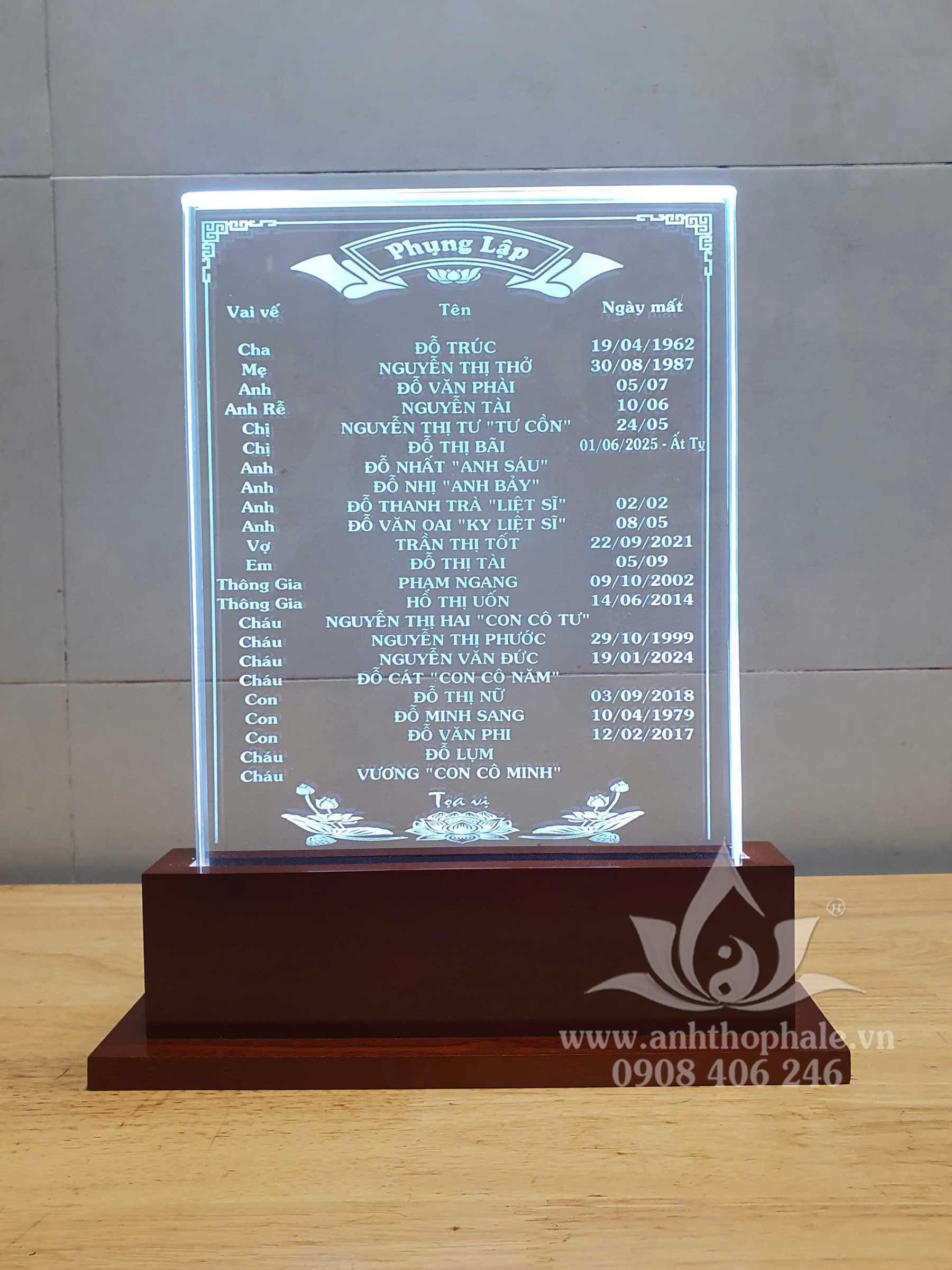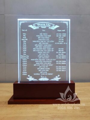 - Bài vị thờ gia tiên khắc laser pha lê: 20×25