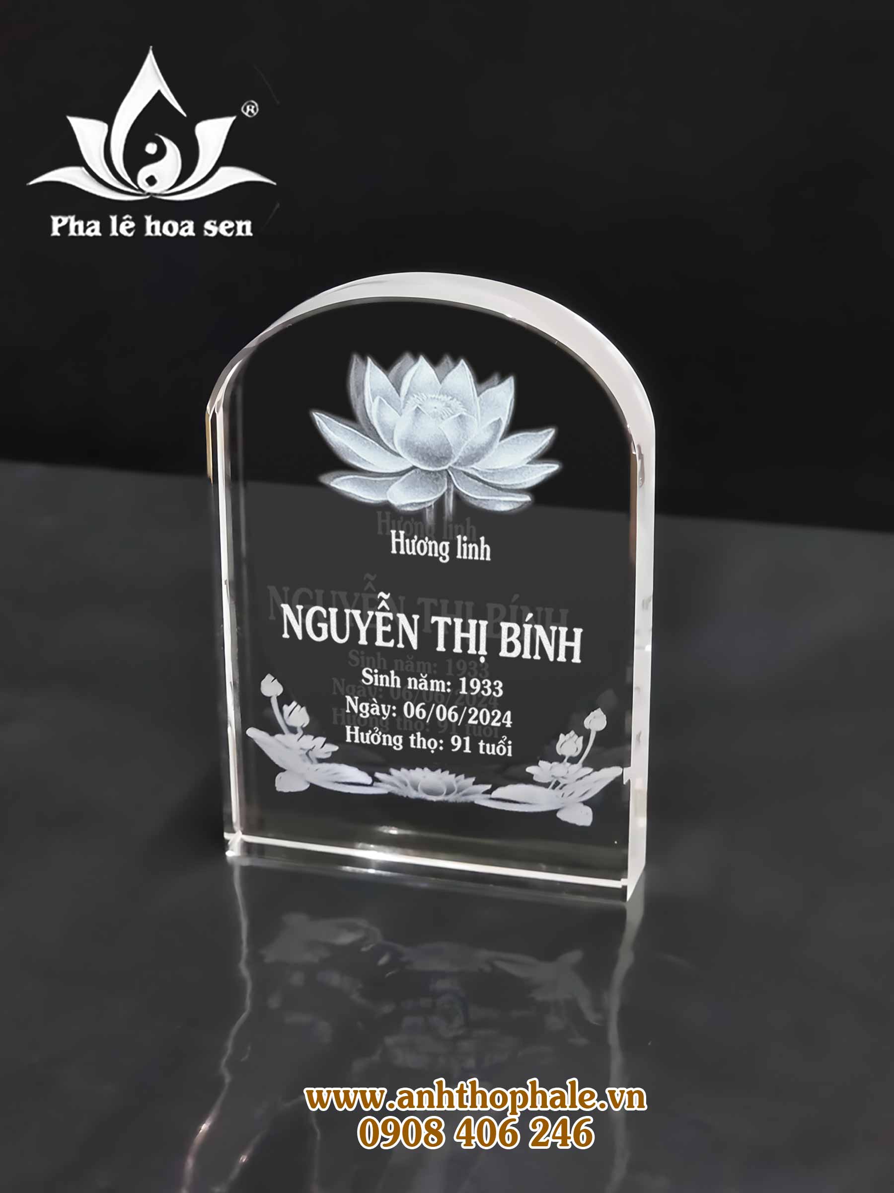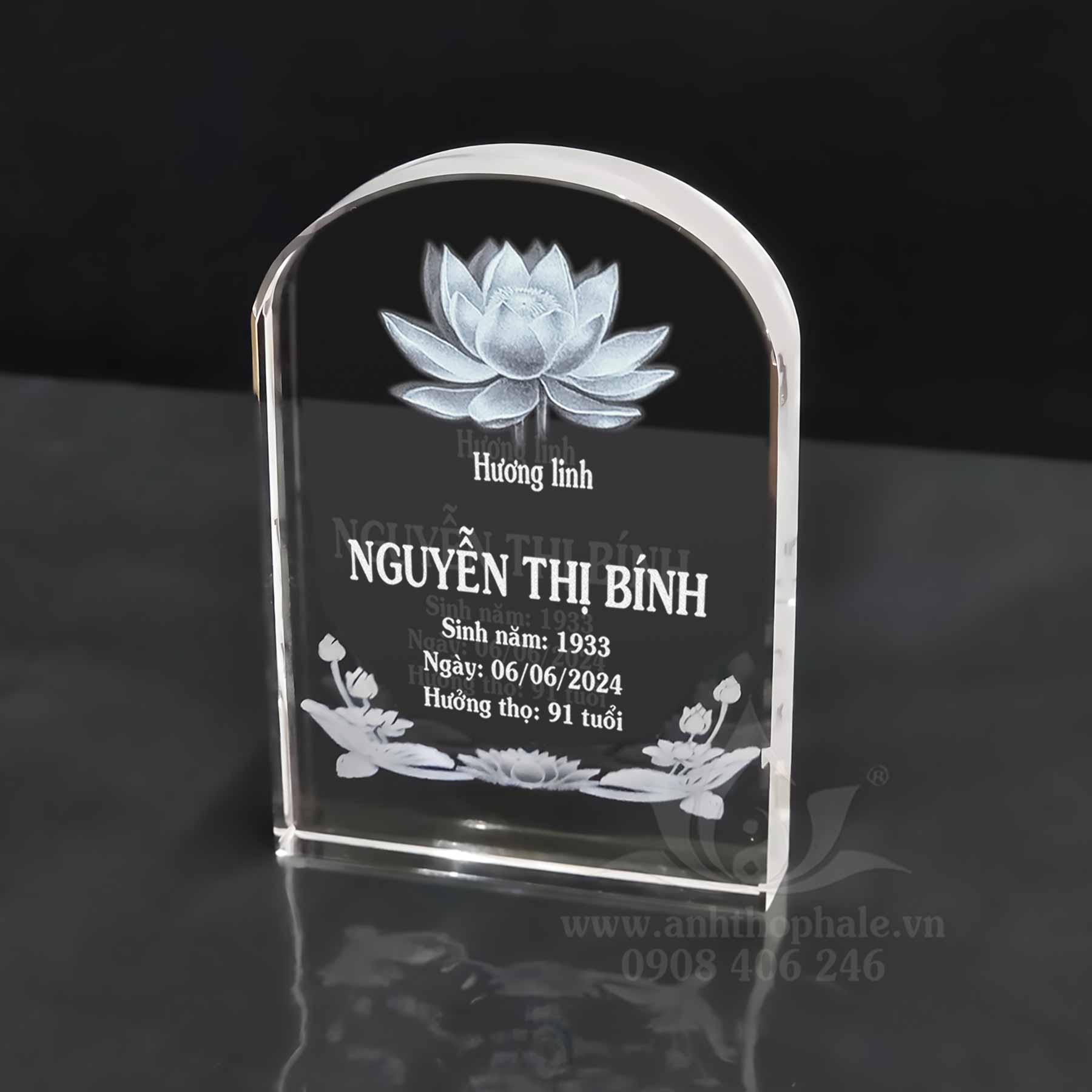Bài vị trong chùa khắc laser pha lê hoa sen 7x10cm