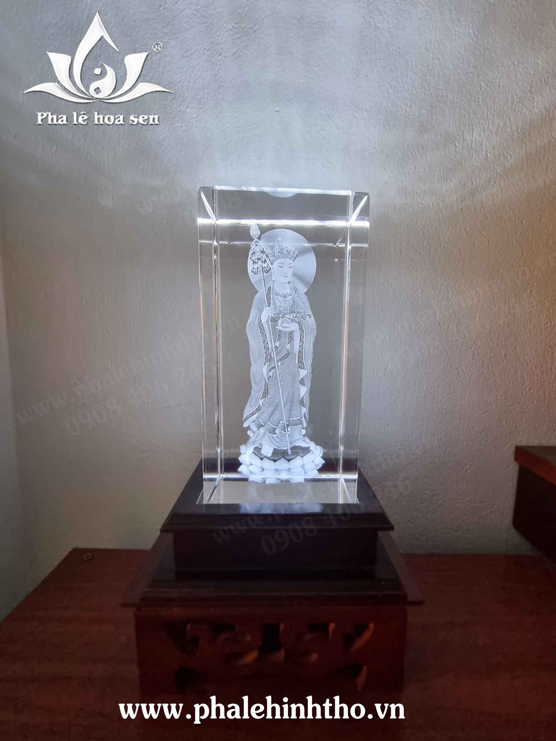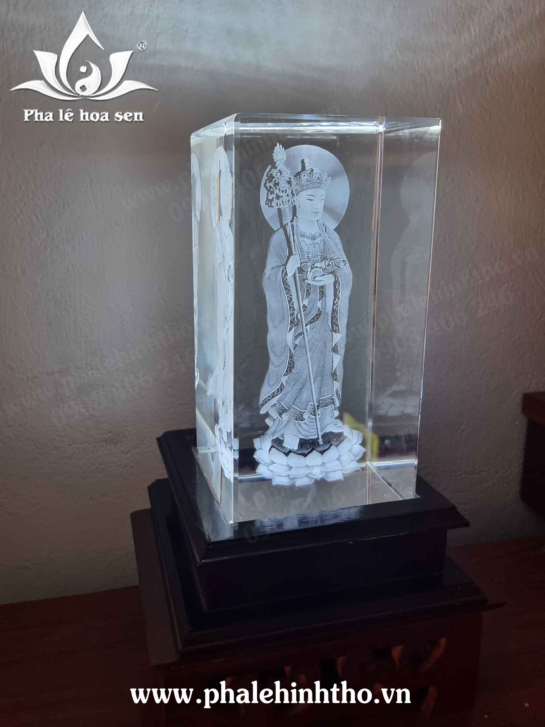 – Địa tạng vương bồ tát khắc 3D pha lê 10x15x6cm