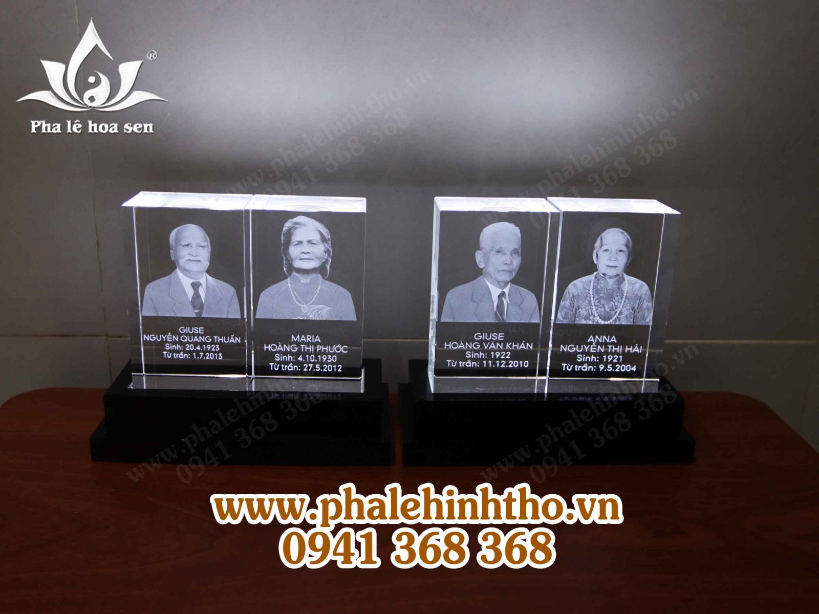 Ảnh bài vị pha lê khắc laser 12x25cm
