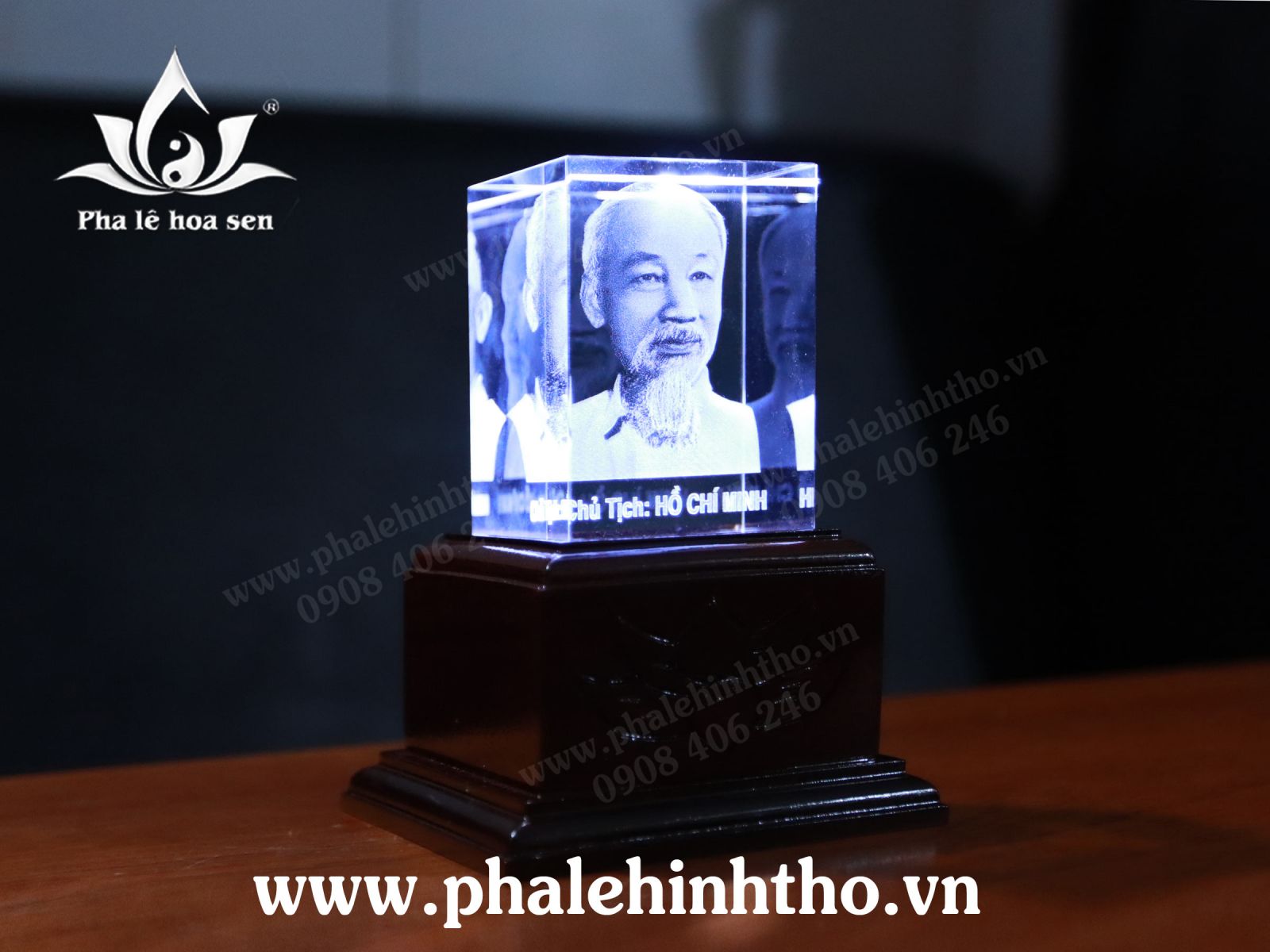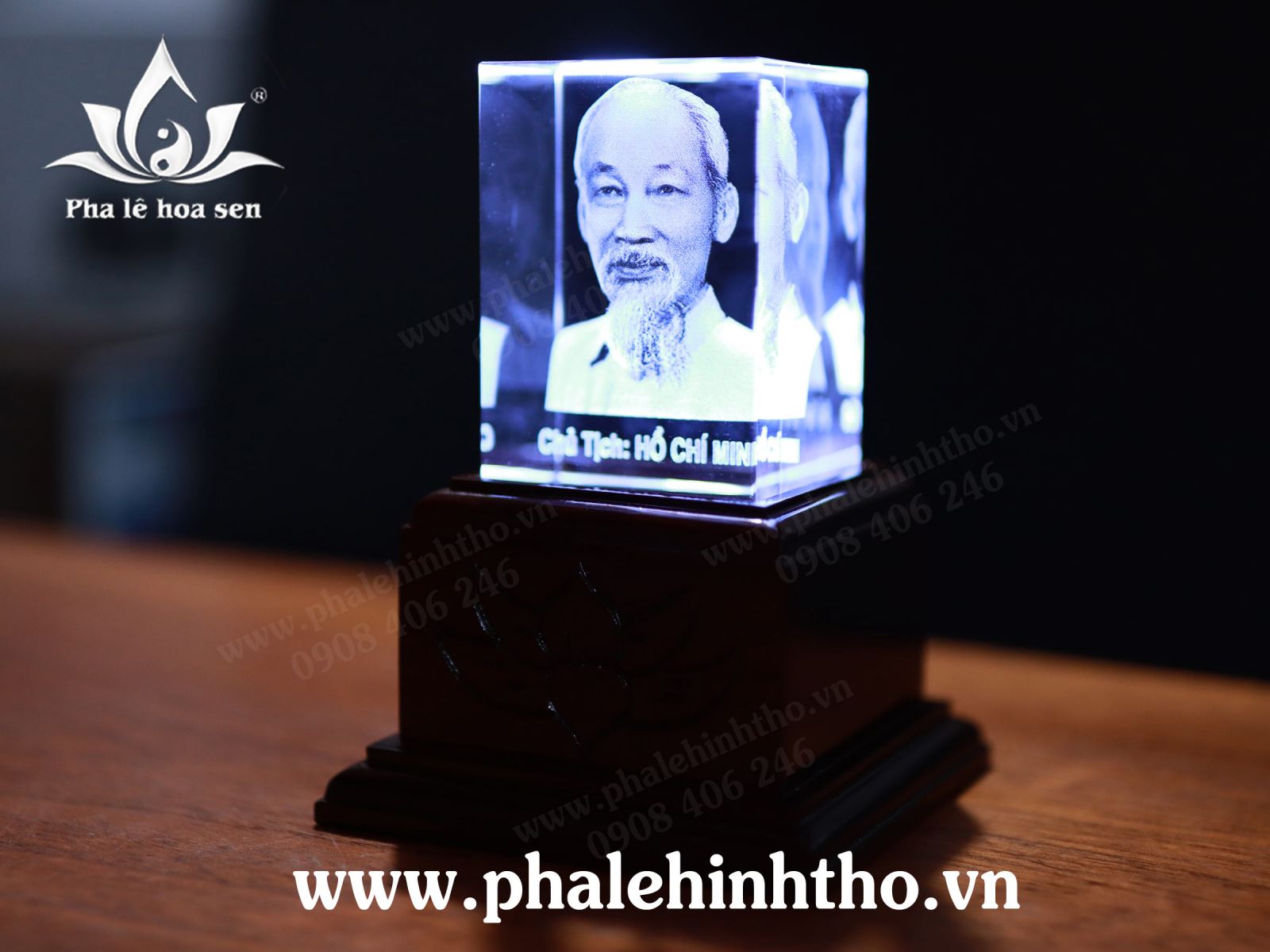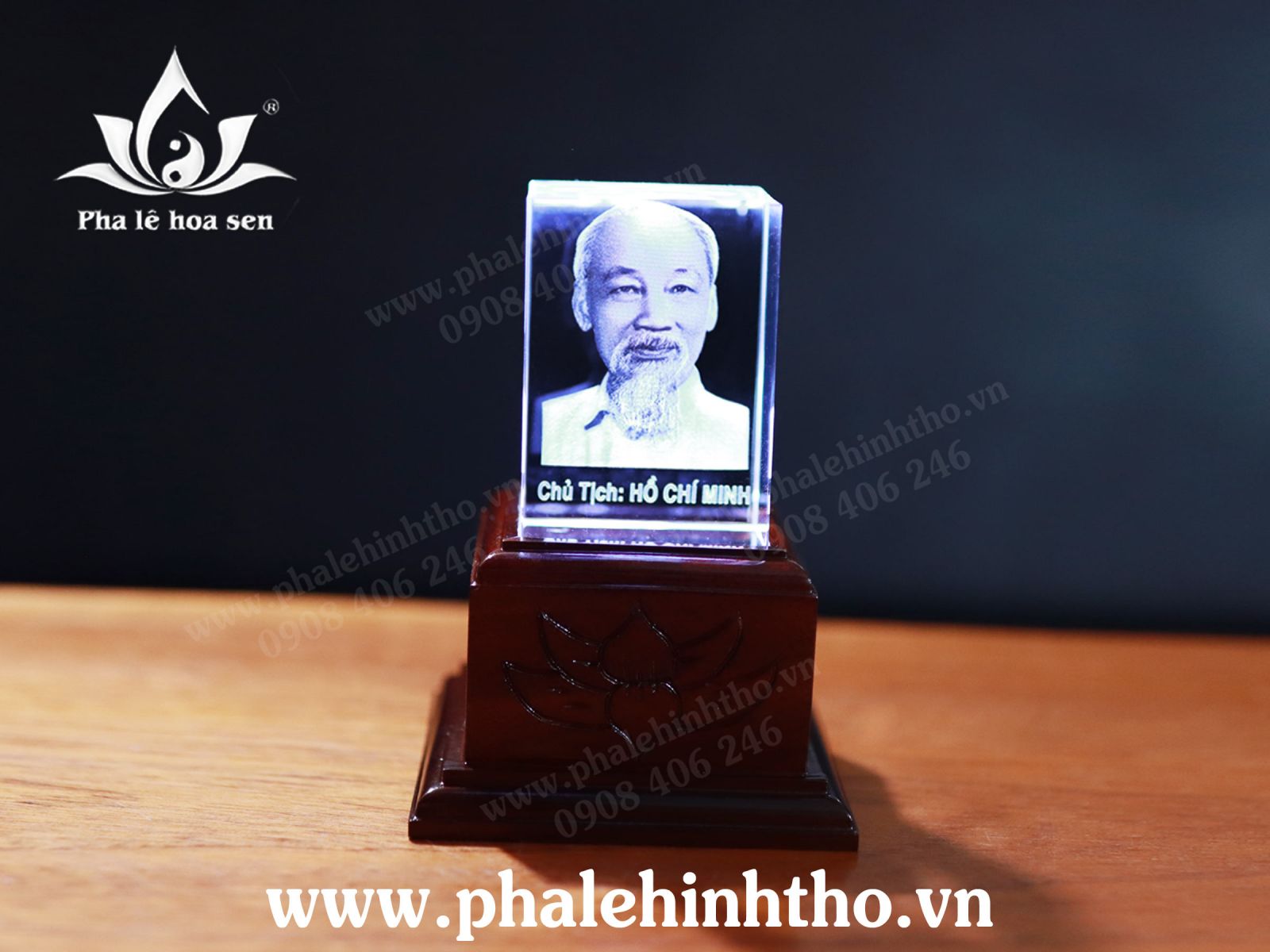 – Pha lê khắc laser 3D Bác Hồ kt 6x9x6cm