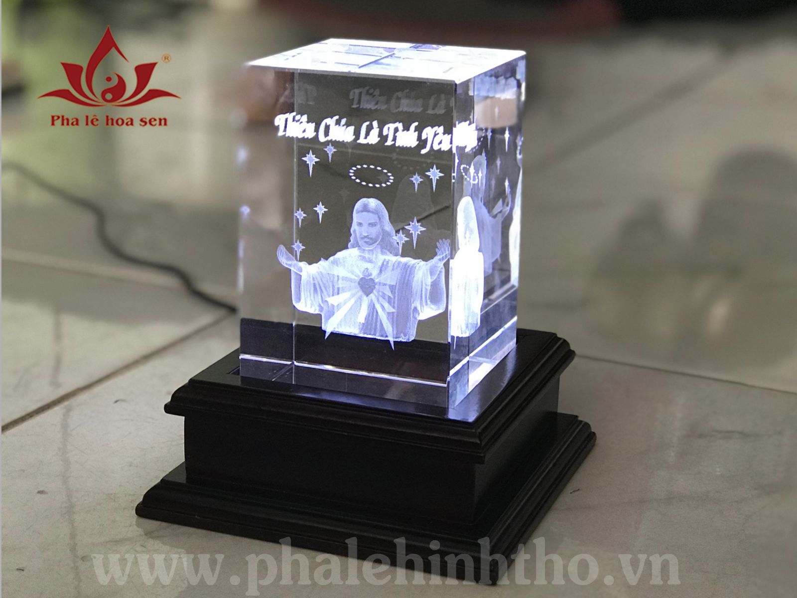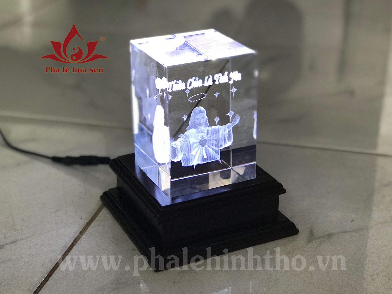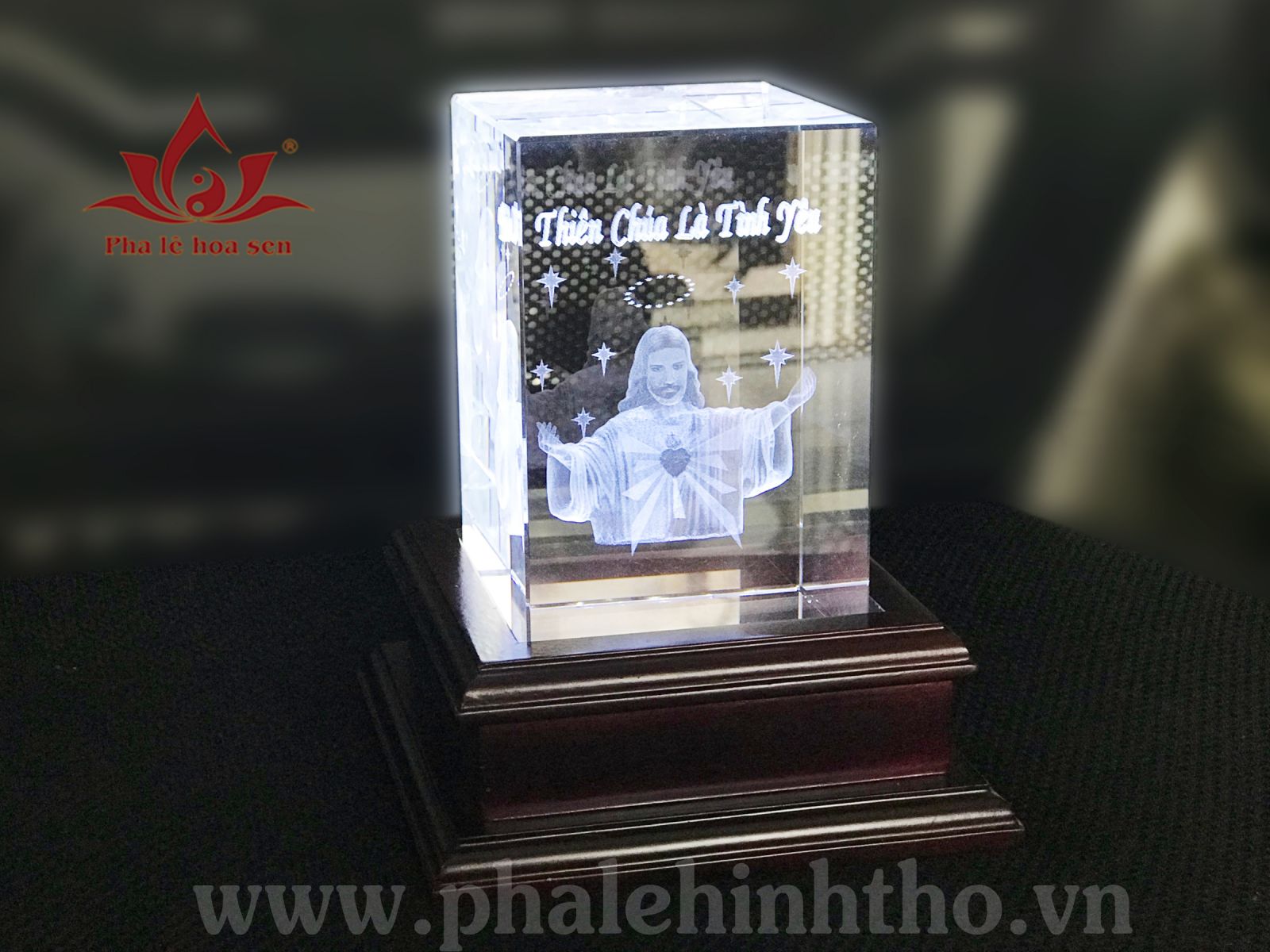 – Pha lê khắc laser 3D chúa Giêsu kt 8x12x8cm
