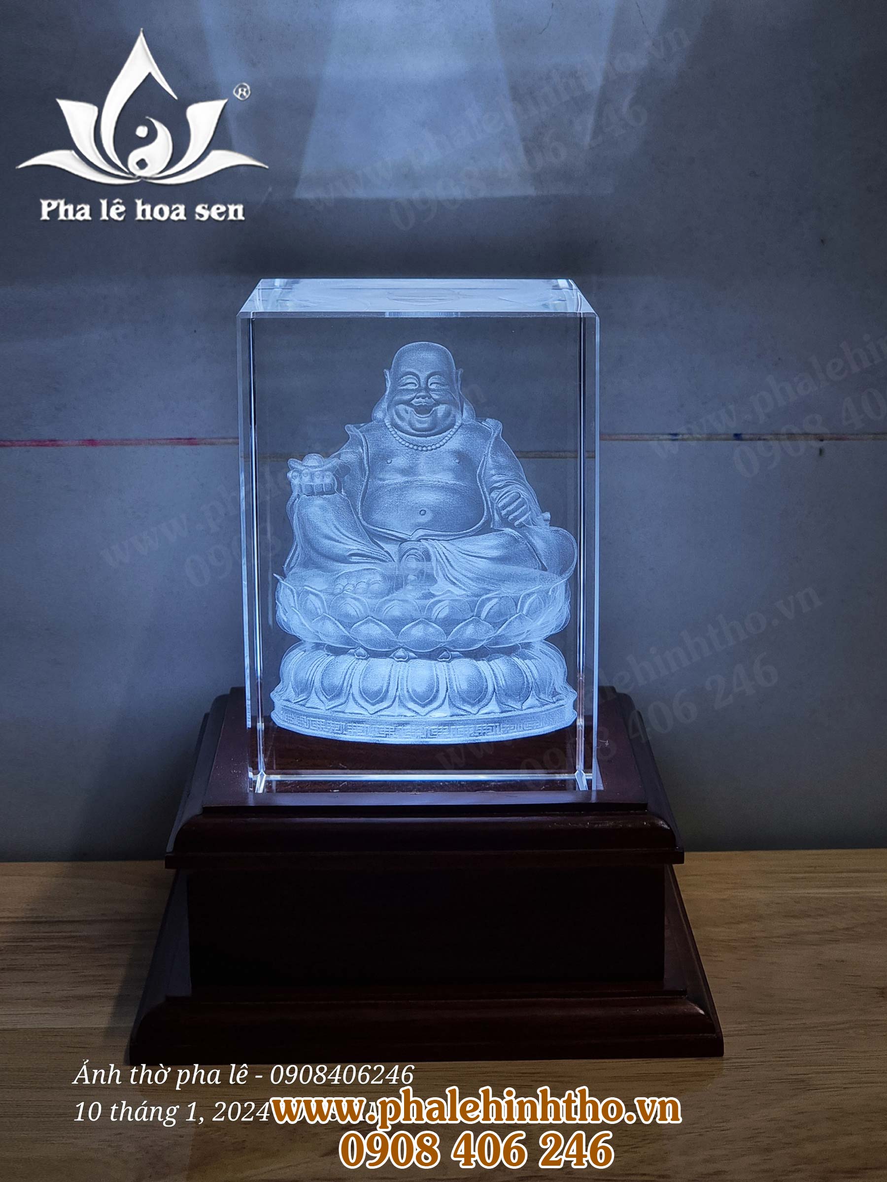 – Pha lê khắc 3D phật di lặc kt: 8x12x8cm