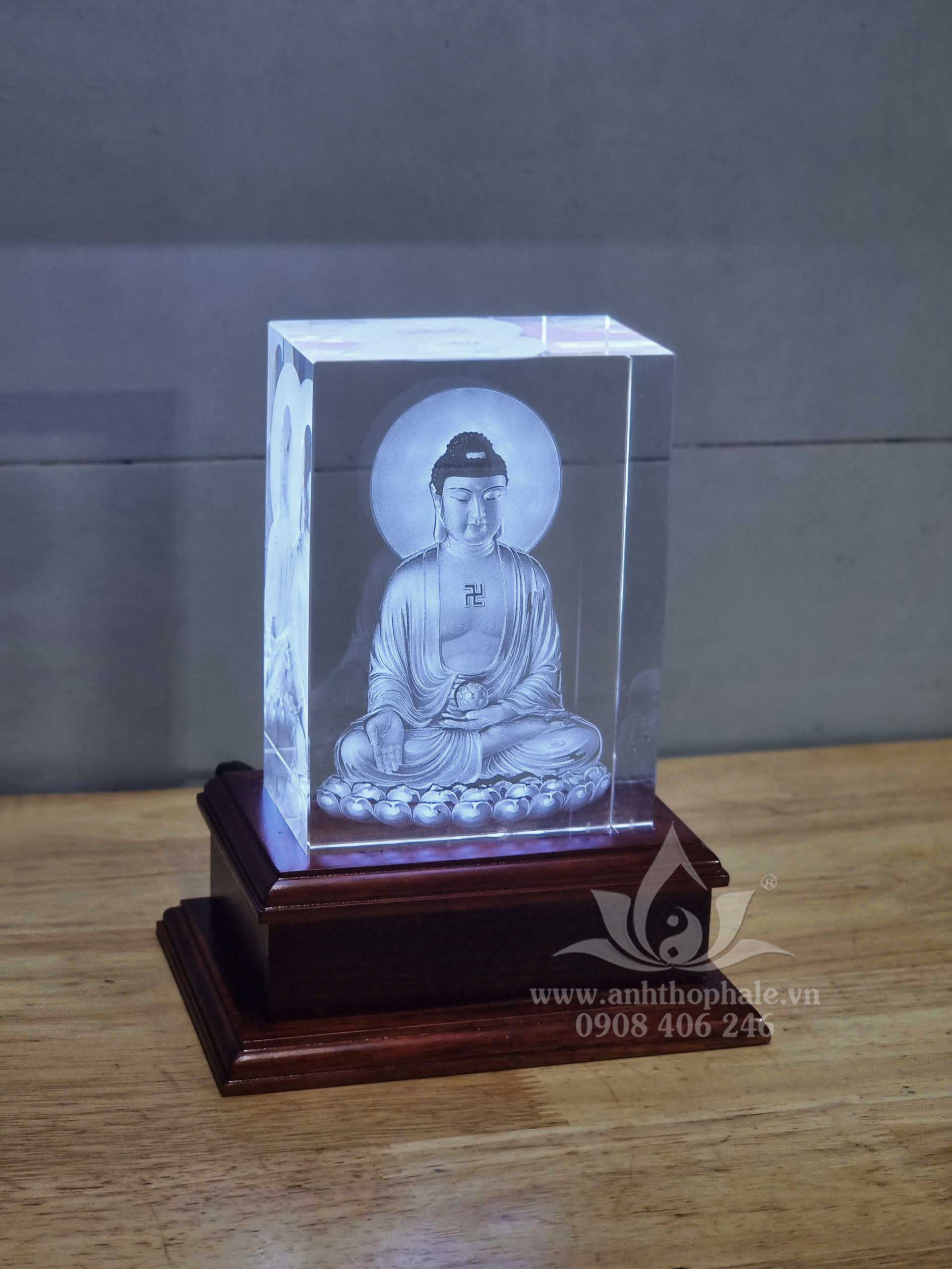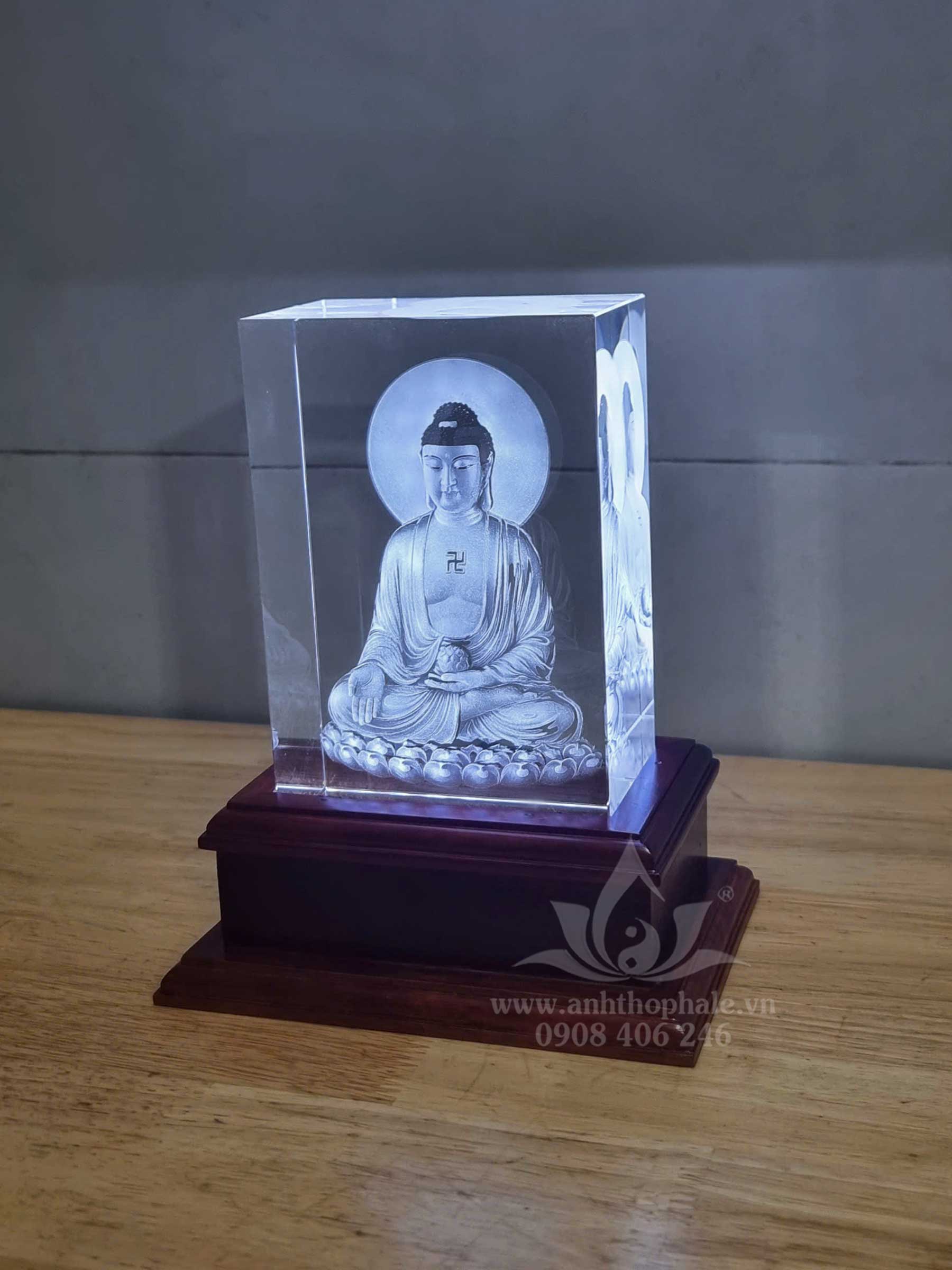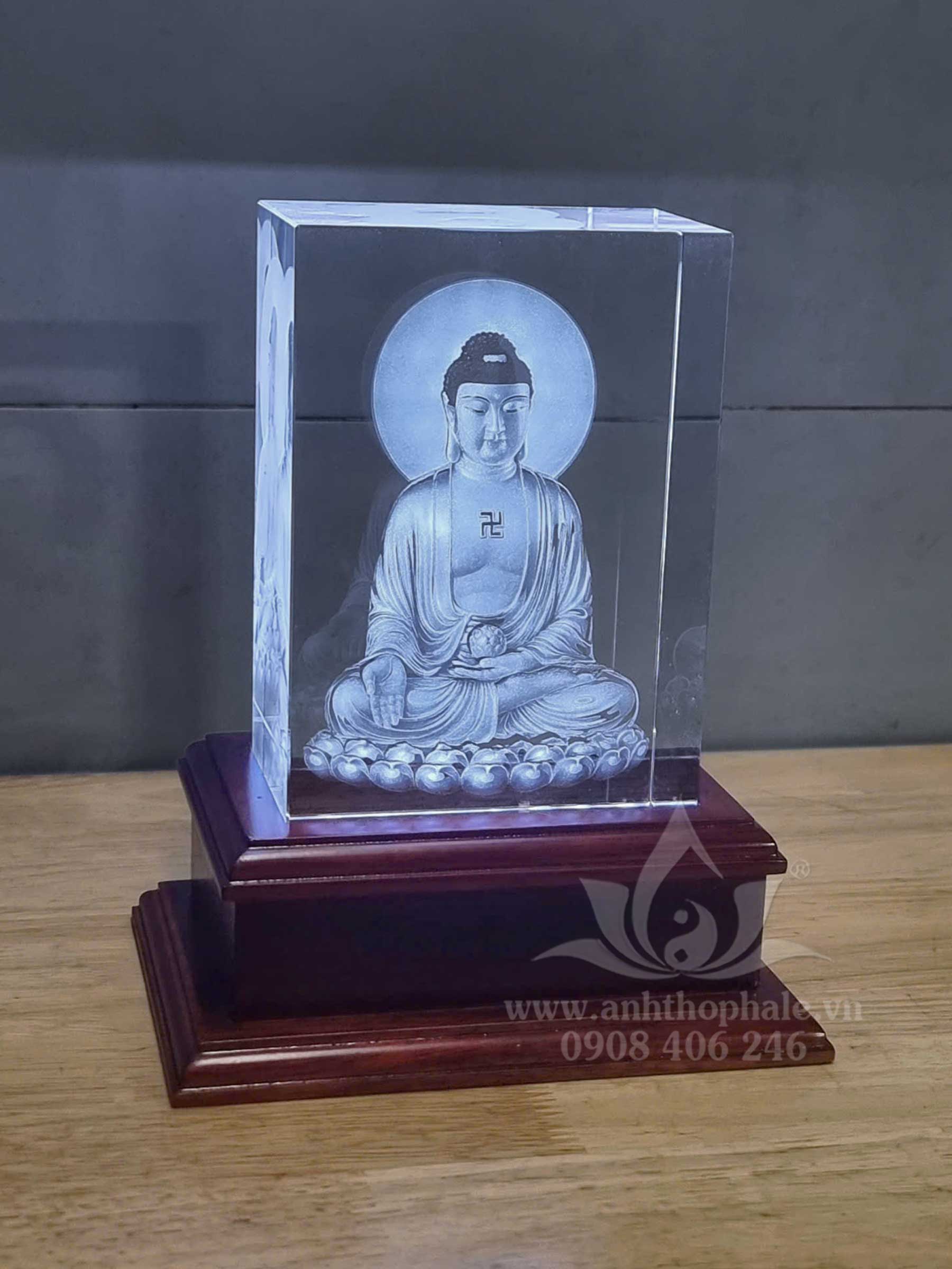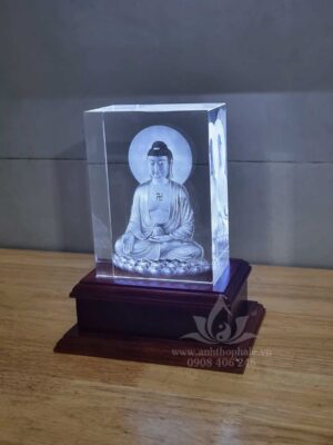 Tượng Phật A Di Đà pha lê ngồi đài sen khắc laser 3D